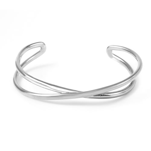 PLUSTERの316Lステンレス製ホワイトゴールドバングルは、金属アレルギー対応で肌に優しく、レディース向けのスタイリッシュなデザイン。誕生日やプレゼントに最適なギフトBOX付きです。