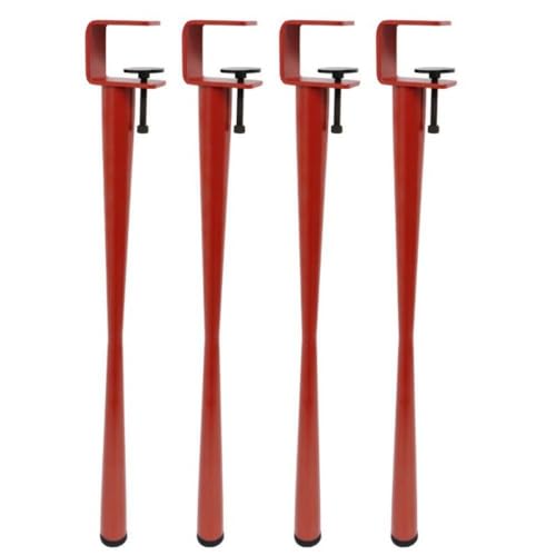 4本セットの金属製クリップ式テーブル脚。穴あけ不要で、ノンスリップ設計。高耐久F型、調節可能で、デスクトップを傷から保護。サイズは71cm、カラーは赤。