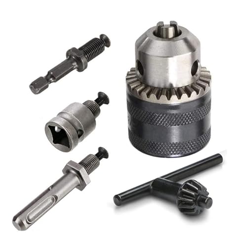 LOYELEY 1.5-13mmドリルチャックは、六角シャンク、SDS、1/2インチアダプターソケットを搭載。ブラックメタルキー付きで、インパクトレンチ変換や電動ドリルでの使用に最適な全金属タイプのキーレスドリルチャックアダプターセットです。