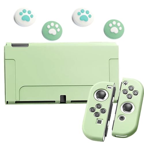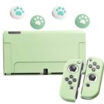 Switch OLEDモデル用の耐久性TPU素材製ジョイスティックカバー。猫爪デザインで全面保護、キズ防止・衝撃吸収、指紋防止機能も。着脱簡単で可愛いイエロー色。