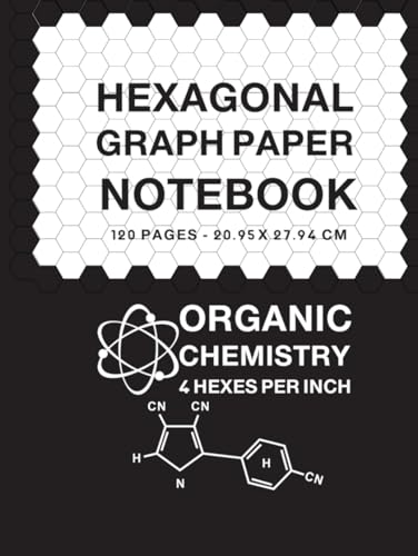 六角グラフ用紙ノートは、有機化学や科学、数学、芸術に最適です。1インチあたり4ヘックス、120ページ、サイズは20.95 x 27.94 cm。