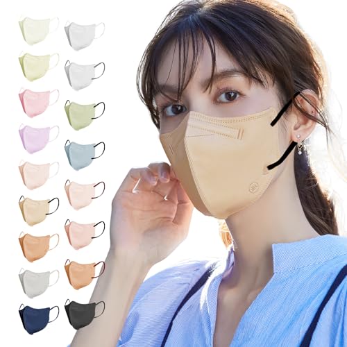 52枚入りの立体マスクは、花粉症対策に最適。息しやすく敏感肌にも優しい不織布3層構造。おしゃれなバイカラー、使い捨てで耳が痛くならない設計。ライトベージュとブラックの耳紐。