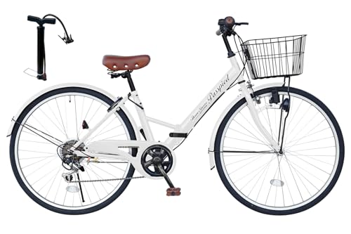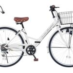 AIJYU CYCLEの折りたたみ自転車26インチは、シティサイクルやママチャリに最適。シマノ6段ギアを搭載し、カゴやサークル錠、ダイナモライト付き。カラーはホワイトで、機能性とデザイン性を兼ね備えています。
