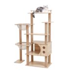 【なになにLife】キャットタワーは木製で高さ140cmの大型猫用。多頭飼いやシニア猫に最適な豪華なデザイン。省スペースなスリムタイプで、見晴台付きや爪研ぎポールを備えています。安定した作りで運動不足解消にも効果的。