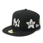 ニューエラ59FIFTYキャップ、NYブラック・ニューヨーク・ヤンキースモデル。フラットバイザーで春夏に最適。普段使いやスポーツにぴったりのサイズ展開。