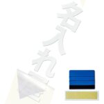 【1行タイプ たて書き】のカッティングステッカーです。スキージー付きで、文字だけが残るデザイン。縦の長さは10cmから60cmまで選べ、漢字、ひらがな、カナ、アルファベット、数字が対応。車、自転車、看板、店舗表札など屋外で使用可能、防水・耐候性に優れています。オーダーメイドであなたの文字を作成できます。