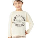 エバークローゼットの子供服、女の子用ロンティー。薄手で柔らかい綿素材の長袖カットソー。150サイズ、G.アイボリー色のプリントTシャツ。可愛いデザインで着心地抜群です。