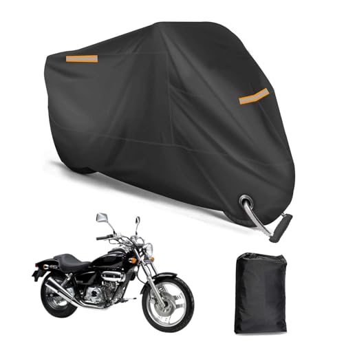 ホンダ マグナ50専用バイクカバー。UVカット、凍結防止、盗難防止機能、3つの反射ストリップ付き。ワンタッチバックルとロック穴で安心。オールシーズン対応、収納バッグ付。