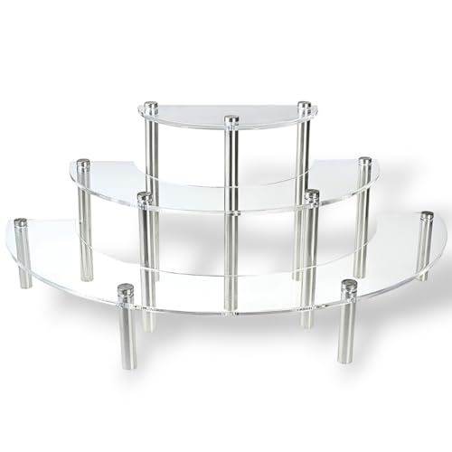 アクリル本舗のディスプレイスタンドは、フィギュアやコレクションアイテムを美しく見せるための3段式クリア円形展示台です。耐久性に優れ、インテリアとしても最適です。