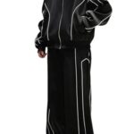 D.IIZOOのジップアップブルゾンジャージ上下セットは、メンズ向けでカジュアルかつゆったりしたデザイン。2点セットのスポーツウェア、ストリートファッションに最適。大きいサイズもあり、スタイリッシュなブラックカラーが魅力。