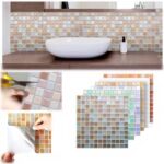 モザイクタイルシール6枚セット。防水・耐熱仕様で、キッチンや洗面所、トイレに最適。カット可能な3Dデザインが特徴で、賃貸でも簡単に貼付・剥がせるリメイクシート。サイズは23.6×23.6cm、アッシュブラウンカラー。