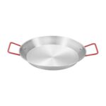 スペイン製のパエリア鍋。IH対応のステンレス鋼で、20cmサイズ。業務用から家庭用まで使えるプロフェッショナルな一品。全ての熱源に対応し、火傷防止ハンドル付きの便利なデザイン。