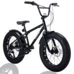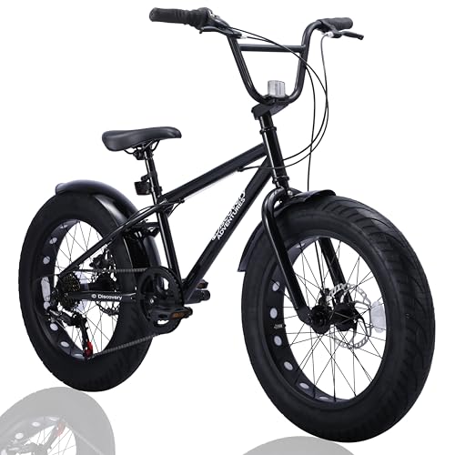 Discovery AdventuresのCity Cruiser Fat BMX自転車は、20インチのシティファットバイクで、街乗りに最適です。フリースタイルにも対応し、ディスクブレーキやサイドスタンドを装備したミッドナイトブラックカラーです。