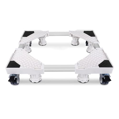 TIWOUN洗濯機台は、キャスター付きで360度回転し、長さ調節可能。耐荷重500kg、昇降可能な防水パン。ジャッキ固定で安定、減音防振機能付き。幅/奥行42cm~68cm対応。