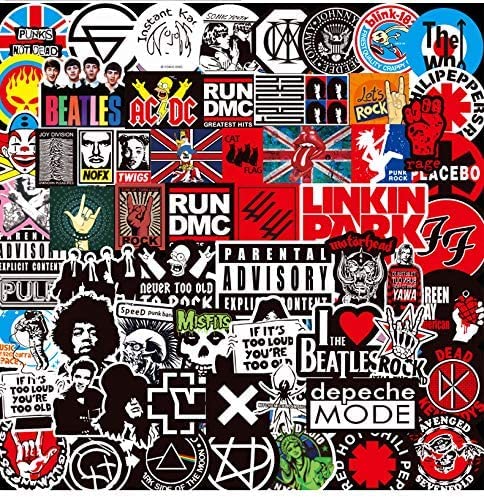 100枚のロックステッカーセット。バンドやロックミュージックをテーマにした防水シール。スーツケース、バイク、ヘルメット、部活など様々な用途に最適です。個性を引き立てるアイテム!