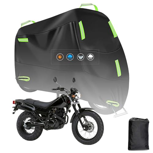 ヤマハ TW200 用バイクカバーは、210D 全天候型で防水・防埃機能を備えています。耐熱性と紫外線防止、5つの反射ストリップ、ワンタッチバックル付きで盗難防止対策も完備。サイズは230×95×125cmで収納バッグ付きです。
