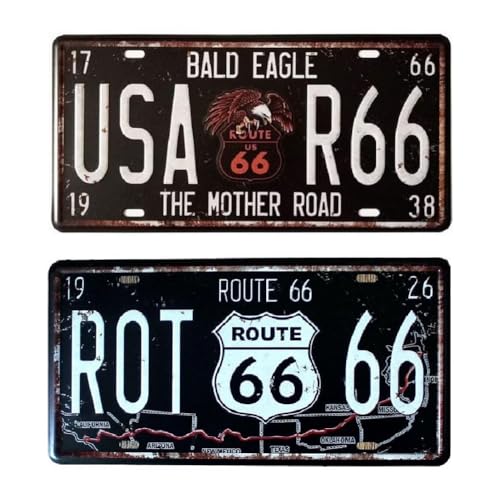 KitMallのブリキ看板セットは、Route66をテーマにしたナンバープレート型のインテリアアイテムです。アメリカンな雰囲気で、カフェや自宅の装飾に最適です。2枚セットでお得な商品です。