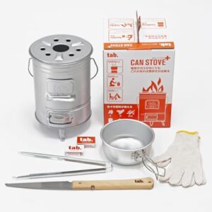 【tab. 缶ストーブ・プラス】防災グッズ 簡単着火 災害対策 調理 暖房 焚き火 木炭 練炭 薪 クッカー ノコギリ 火ばさみ マッチ 軍手