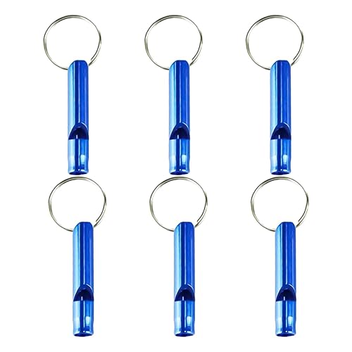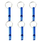 緊急ホイッスル6個セット。アルミ製で軽量・コンパクト。大音量で防災やアウトドアに最適。キーホルダー付きで携帯便利。全天候対応、学校やキャンプ、ハイキング、防犯グッズとして活躍します。色はブルー。