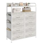 REAHOMEの2段棚収納チェストは、側面収納ポケット付きで衣類を整理しやすいおしゃれなデザイン。高防水皮革素材を使用し、オークホワイトのカラーでリビングや脱衣所に最適です。
