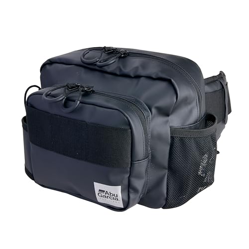 AbuGarciaアングラーヒップバッグミニ、コーティングブラックは、軽量で耐久性に優れたデザイン。釣り道具や小物を収納できるポケットが豊富で、快適な着用感を実現。アウトドアに最適なアイテムです。