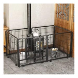 Vifxucy 暖炉ガード フェンス ストーブガード 耐熱 ペットゲート やけど防止 火花防止 複数の接合および設置方法、多目的 転倒 ヒーター柵 防護 リビング 室内 ホームセーフティ 薪ストーブ ペットフェンス (ブラック(ドアを含む),6枚セット(長さ120×幅60×高さ70cm))