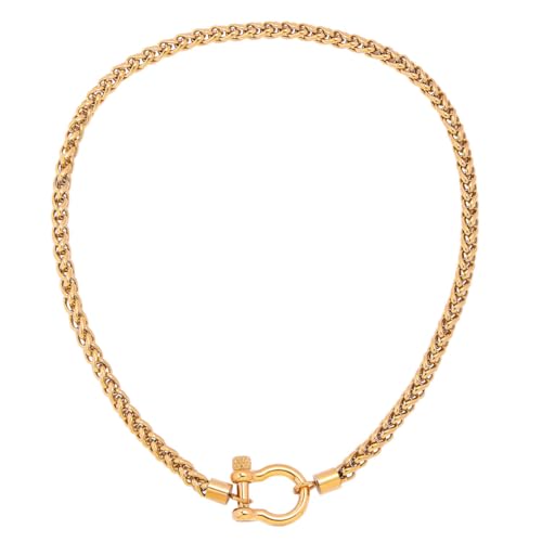 Wolentty ヘビースクリューアンカーシャックルウィートネックレスは、18.5インチのフォックステールチェーンで、ステンレス鋼製。バレンタインデーにもぴったりの宝石なしのシンプルなデザインです。
