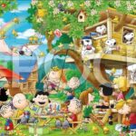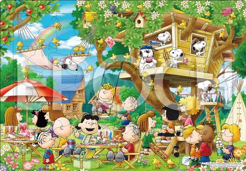エポック社のアポロのピクチュアパズル、スヌーピーのツリーハウスデザインの75ピース。5歳以上向け、こども向けの台紙つきパズル。STマーク認証取得の安全な製品です。