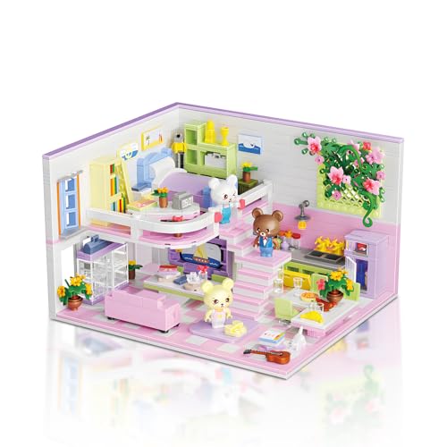 Hallisunのブロックセット(1110 PCS)は、熊さんデザインのピンク部屋模型。大人も子供も楽しめるミニチュアハウスで、8歳以上向け。クリスマスや誕生日のギフトに最適。