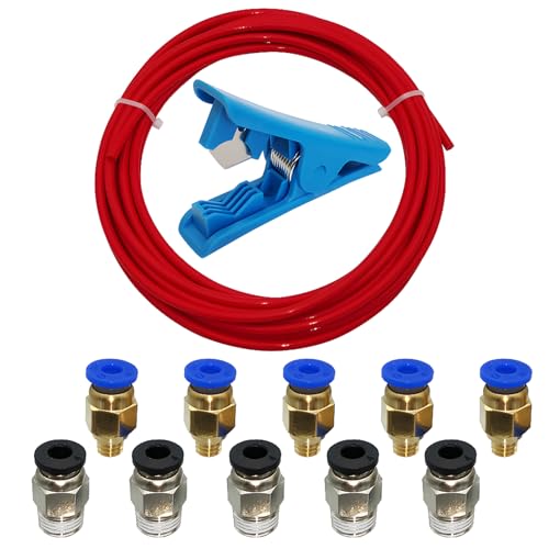 PTFEパイプ5M、CESFONJERレッドテフロンパイプ、パイプカッター1個、PC4-M6およびPC4-M10接続用フィッティング付き。3Dプリンタ用フィラメント1.75mm対応。