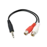 3.5mmステレオミニプラグからRCAピンジャックへのオーディオ変換ケーブル。長さ10cmで、音声機器の接続に最適。コンパクトで持ち運び便利。