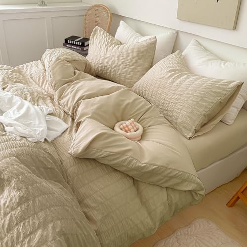 布団カバーセット シアサッカー生地 シングル ダブル 寝具カバーセット 3点セット 掛け布団カバー ボックスシーツ 枕カバー 可愛い 柔らかい 快適 通気性 速乾タイプ 丸洗い オールシーズ(ダブル4点セット、ライトコーヒー)の製品情報