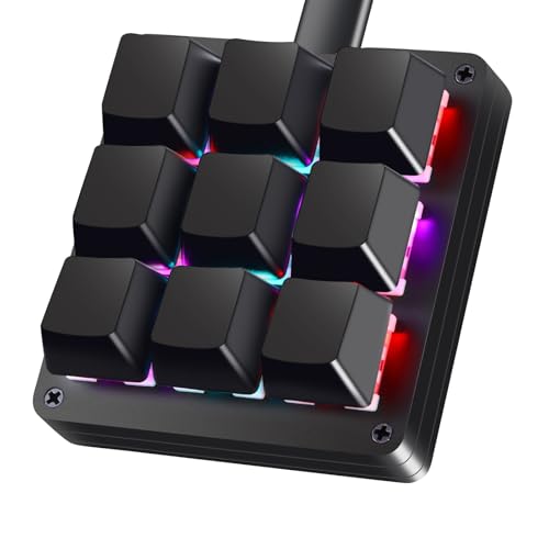 Koolertron 左手デバイス マクロキーボード 9キー プログラマブルキーボード ショートカットキー 片手デバイス 割付/割り当て マクロ機能 有線 RGBバックライト付き 赤軸 4層レイヤー Windows&Mac対応 オフィス/動画編集/ゲームなどに対応