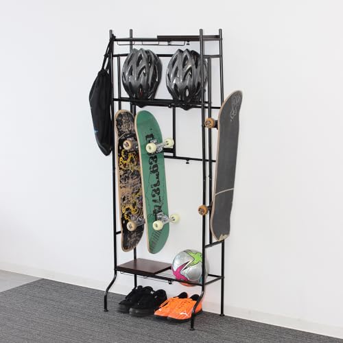 クロシオ スポーツ用品ラック 幅40cmから幅60cm ブラック 玄関 収納 テニス用 サイクリング用品 棚 シンプルの高価買取