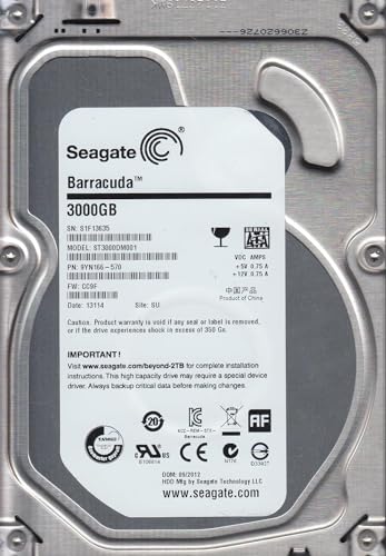 Seagate シーゲイトの内蔵ハードディスク、3TB ST3000DM001は7200rpm、64MBキャッシュ、SATA 6Gb/s対応。2年間の保証付きで、安定した性能を求めるデスクトップ向け。