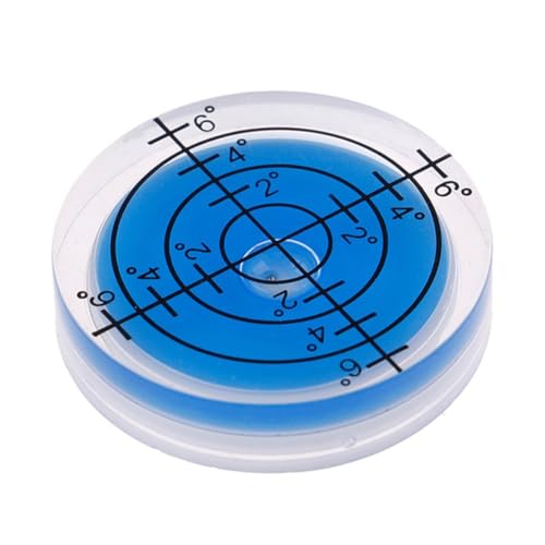 小型のミニ水平器(φ32mm×7mm、ブルー)は、高精度のアナログメモリ付き。フォトフレームや機械設備の設置に最適で、設定不要で簡単に使用可能。コンパクトなデザインで、土木・建築・大工用の便利な工具です。
