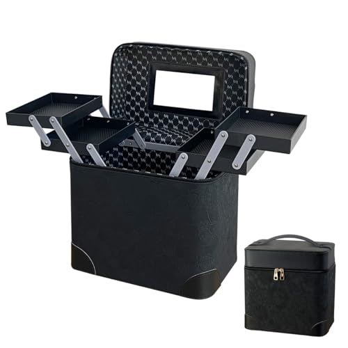 RAKUメイクボックスは大容量で高いボトルも収納可能。花柄デザイン、ミラー付きで便利。防塵・防水仕様、持ち運びやすく、小物整理も簡単。旅行用やプレゼントにもぴったりの多機能ケース(ブラック)。