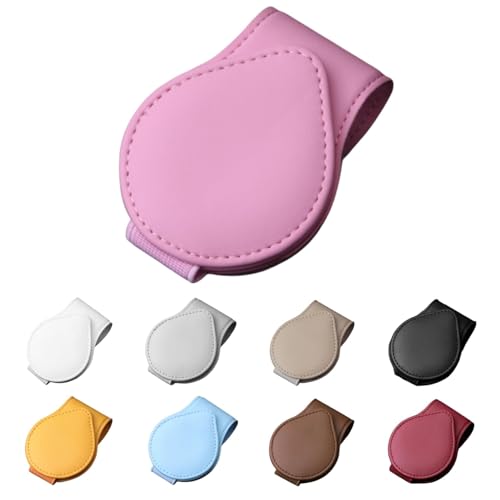 レザー素材のサングラスホルダー。メガネを守り、安全運転をサポート。サンバイザーにクリップで簡単取り付け、マグネット式。選べる9色。丸型・「ピンク」1個。