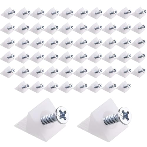 プラスチックアングルブラケット(60個セット)は、棚受けや背板ストッパーとして使用できます。ネジ式で取り付け簡単、クローゼットや本棚の固定に最適です。ホワイトのL型デザインが特徴で、丈夫なプラスチック製です。