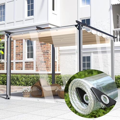透明PVC 防水シート 引裂きに強い 雨よけシート 防風防雨 ビニールシート クリア防水ターポリンカバー 屋外 透湿防水シート 用防水シート バルコニーガーデンカープール (5x8m/16.4×26.2ft,0.55mm) 高価買取中