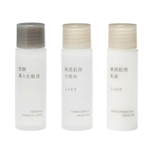 MUJI無印良品の敏感肌用お試しセットは、発酵導入化粧液、敏感肌用化粧水、乳液(しっとり)各20mLが3本入り。肌にやさしい成分で、敏感肌の方にぴったりのアイテムです。