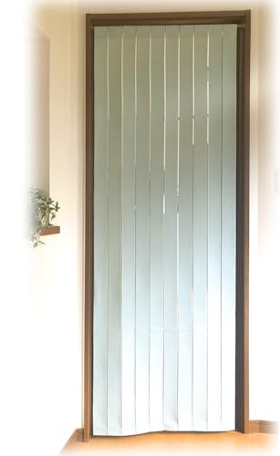 のれん パネルカーテンは、間仕切りやパーテーションとして活躍。遮熱・冷気遮断・省エネ効果があり、厚手生地で目隠しもおしゃれ。サイズは丈195cm、ストライプデザイン(グリーン C152)。
