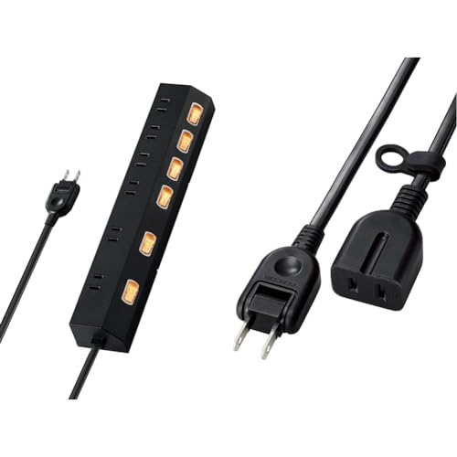 エレコムの延長コードセットには、雷ガード付き6個口電源タップ(2m)とスイングプラグの延長コード(2m)が含まれています。個別スイッチ、ホコリ防止シャッター、マグネット機能が特徴です。