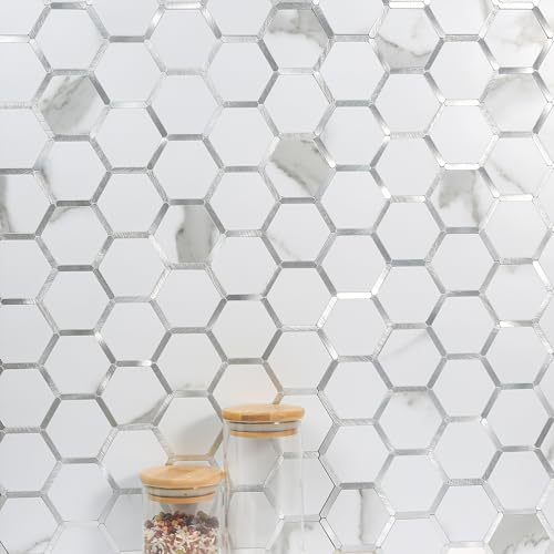 JAMAvisonaの5枚北欧DIYタイルシールは、293*295mmのサイズで3D壁紙として使用可能。3mmの厚みを持ち、防水・防汚、耐熱性があり、はがせるウォールステッカーです。マーブル蜂の巣形(銀色アルミヘアライン)デザイン。
