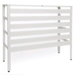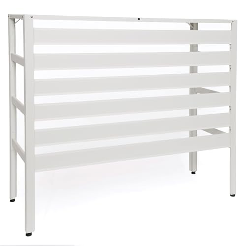 アルミ製のエアコン室外機カバーです。日除けや遮光、遮熱効果があり、雪からも保護します。サイズは幅106×高さ98×奥行38cmのルーバータイプ。カラーはホワイト。