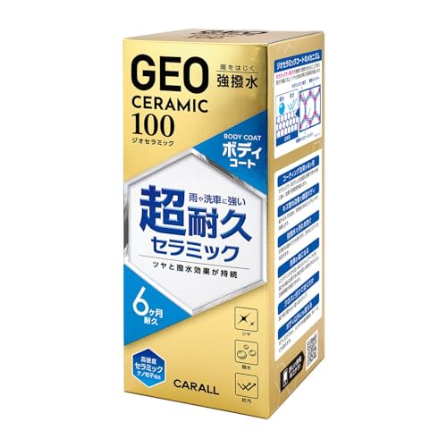 CARALL(カーオール) 晴香堂の洗車用品、GEO CERAMIC ボディコート100は、全塗装色対応の撥水タイプで、100mlの容量を誇ります。優れた保護効果で車の美しさを長持ちさせます。