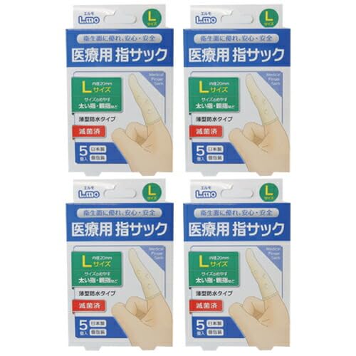 エルモの医療用滅菌指サックLサイズは、1箱5個入りのセットが4箱です。高品質な素材で作られ、衛生的かつ安全に使用できます。医療現場での使用に最適です。