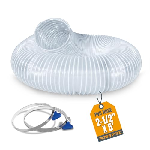 POWERTEC 70391 2.5インチ x 5フィート PVC集塵ホース ステンレススチールホースクランプ2個付き 木工や店舗の掃除機用 2-1/2インチ 集じんホース 集じん継手用の高価買取