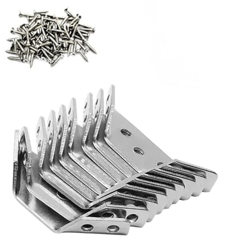ステンレス製のコーナーコード。台形アングルブラケットで、90度の角を強固に固定。棚やテーブル、キャビネットの補強に最適。ネジ付きで10個入り。