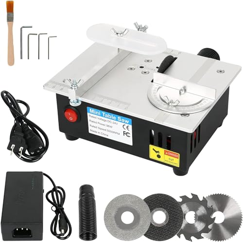 CHAIRLADYのミニテーブルソーは、0-15mmの鋸刃昇降、7段変速機能を搭載。木材、PCB、アクリル、プラスチック、金属などの切断が可能。電源付きダストパイプと日本語説明書も付属。